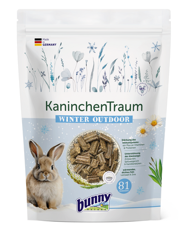 Bunny KaninchenTraum WINTER OUTDOOR ist ein speziell entwickeltes Alleinfuttermittel für Kaninchen im Winter, ideal für die Außenhaltung.
