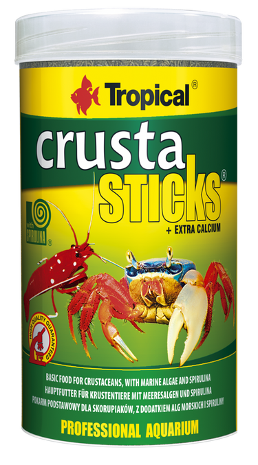 CRUSTA STICKS ist ein Hauptfutter für Krustentiere in Form von sinkenden Sticks (ca. 6mm) mit einem Zusatz an Meeresalgen und Spirulina.