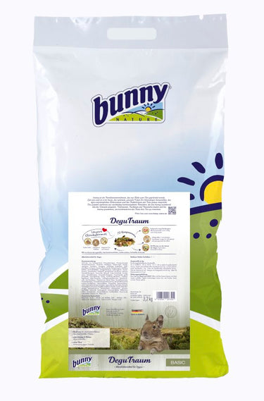 DeguTraum BASIC ist vollkommen ausgewogen. Es kann zur freien Verfügung (ad lib) gefüttert werden. Das bedeutet: Napf auffüllen, leerfressen lassen und erst dann erneut auffüllen. Die Tiere werden lediglich ihren notwendigen Bedarf decken. Dazu täglich frisches, handwarmes Wasser und hochwertiges bunny Heu. Somit ist die optimale Versorgung 24/7 gewährleistet – ohne Dosierung, Rationierung oder Verknappung.