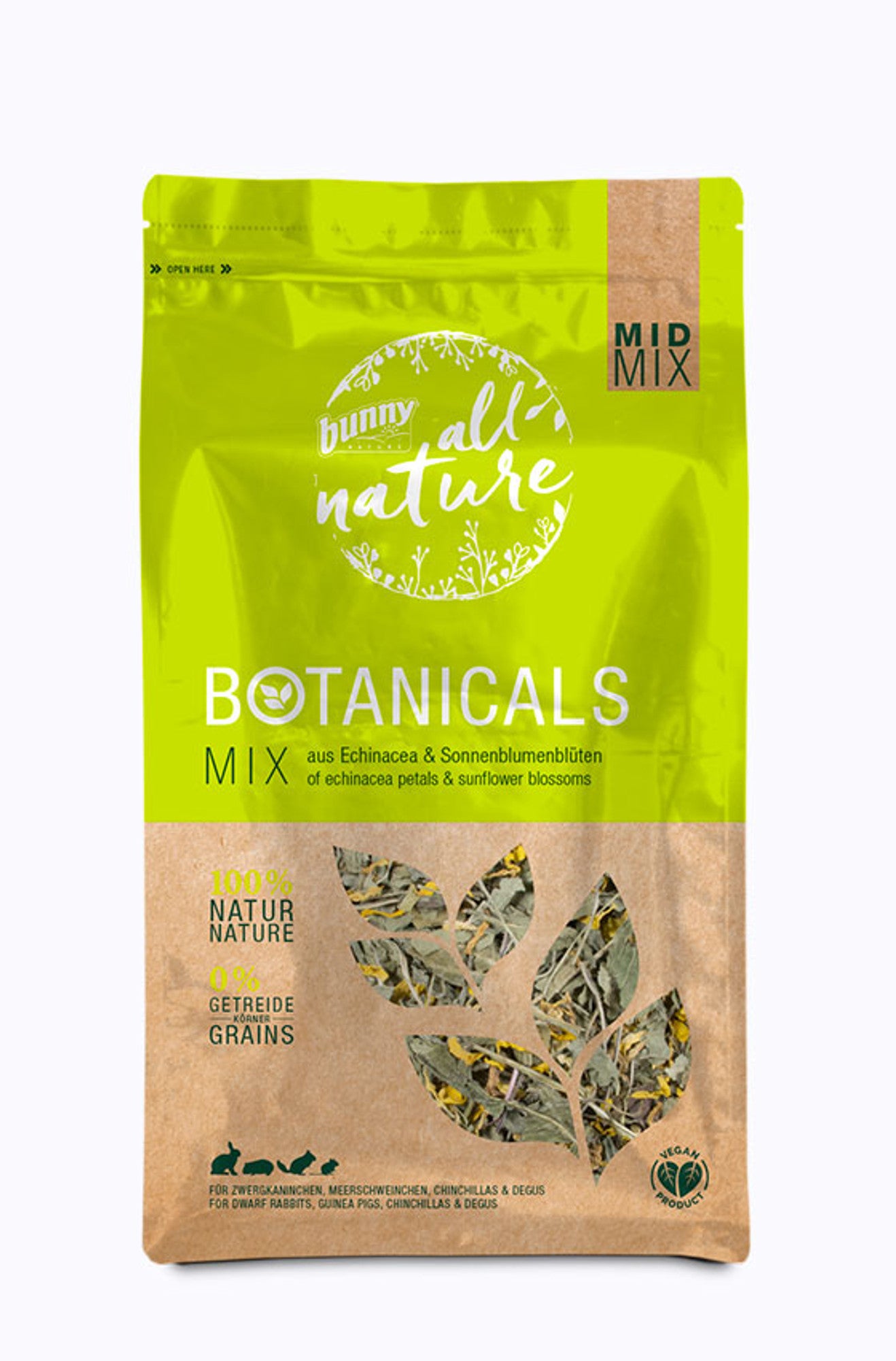 Bunny BOTANICALS MID MIX – aus Echinacea & Sonnenblumenblüten ist ein natürlicher Kräutermix für Kaninchen und Kleintiere, der mit hochwertigen Blüten eine gesunde Abwechslung bietet. Die enthaltene Echinacea überzeugt mit ihrem aromatischen Geschmack und wertvollen pflanzlichen Wirkstoffen, während die Sonnenblumenblüten die Mischung harmonisch ergänzen.