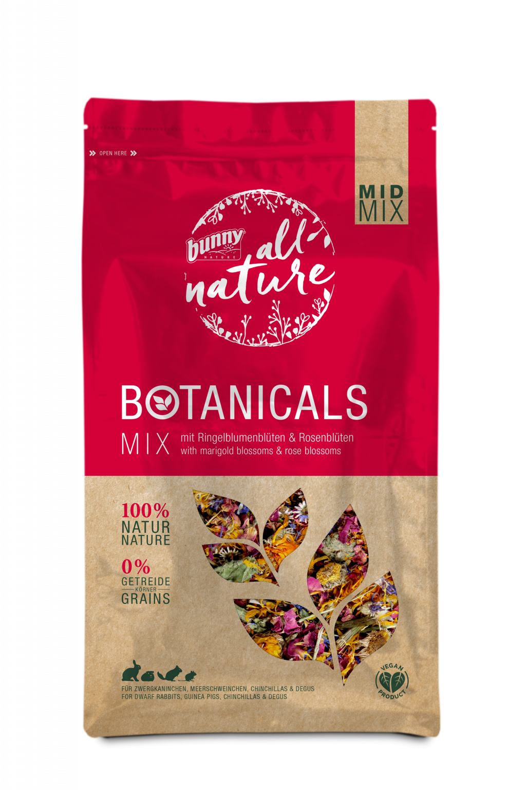 Die BOTANICALS MID MIX – mit Ringelblumenblüten & Rosenblüten bietet Kaninchen und Kleintieren eine besonders schmackhafte und natürliche Abwechslung. Die aromatischen Ringelblumenblüten kombiniert mit den wohlduftenden Rosenblüten machen den Kräutermix zu einem besonderen Highlight im Napf.