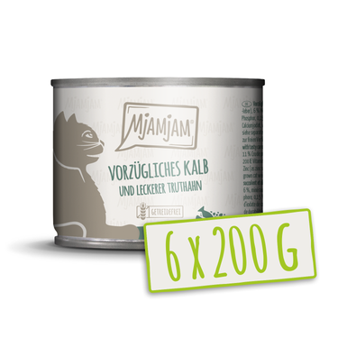 Diese ausgewogene Katzenfutter-Mahlzeit kombiniert zartes Kalbsfleisch mit feinem Truthahn und knackigen Möhren – für ein vollwertiges und natürliches Genusserlebnis. Die Rezeptur liefert alle wichtigen Vitamine, Mineralstoffe und Spurenelemente, die ausgewachsene Katzen für Gesundheit und Vitalität benötigen. Das Nassfutter orientiert sich an einer artgerechten, beutegerechten Ernährung mit besonders hohem Fleischanteil. Es ist getreidefrei und kommt ohne Zucker, künstliche Konservierungsstoffe, Geschmacksverstärker oder synthetische Bindemittel aus – ideal für empfindliche Katzen