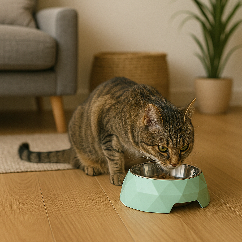 Der Beeztees Melamin Futternapf Katze Diamond überzeugt nicht nur durch Funktionalität, sondern auch durch sein elegantes Design. Sein Rand ist mit abgeflachten, eckigen Flächen versehen, die an einen geschliffenen Diamanten erinnern und ihm eine besondere Optik verleihen.