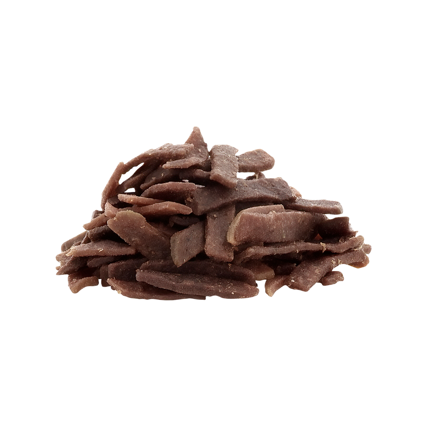 Für catz finefood Meatz® verwenden wir hochwertiges, saftiges Fleisch aus der Schweiz, welches gegrillt und anschließend schonend luftgetrocknet wird. Heraus kommen kleine Streifen, die außen knusprig-kross und innen zart sind. Diese Konsistenz ist sehr verführerisch für deine Fellnase. Dem Fleischanteil von mindestens 98 % wird je Sorte nur eine wertvolle Zutat wie Aloe Vera, Propolis, Hüttenkäse, Cranberry, Biotin oder Taurin hinzugefügt. Eine wahre Leckerei für Katzen, denn sie lieben das intensive Fleischaroma.