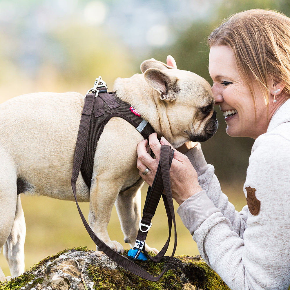 • Farblich passender Karabiner und Metallöse, passend zu den curli Geschirren