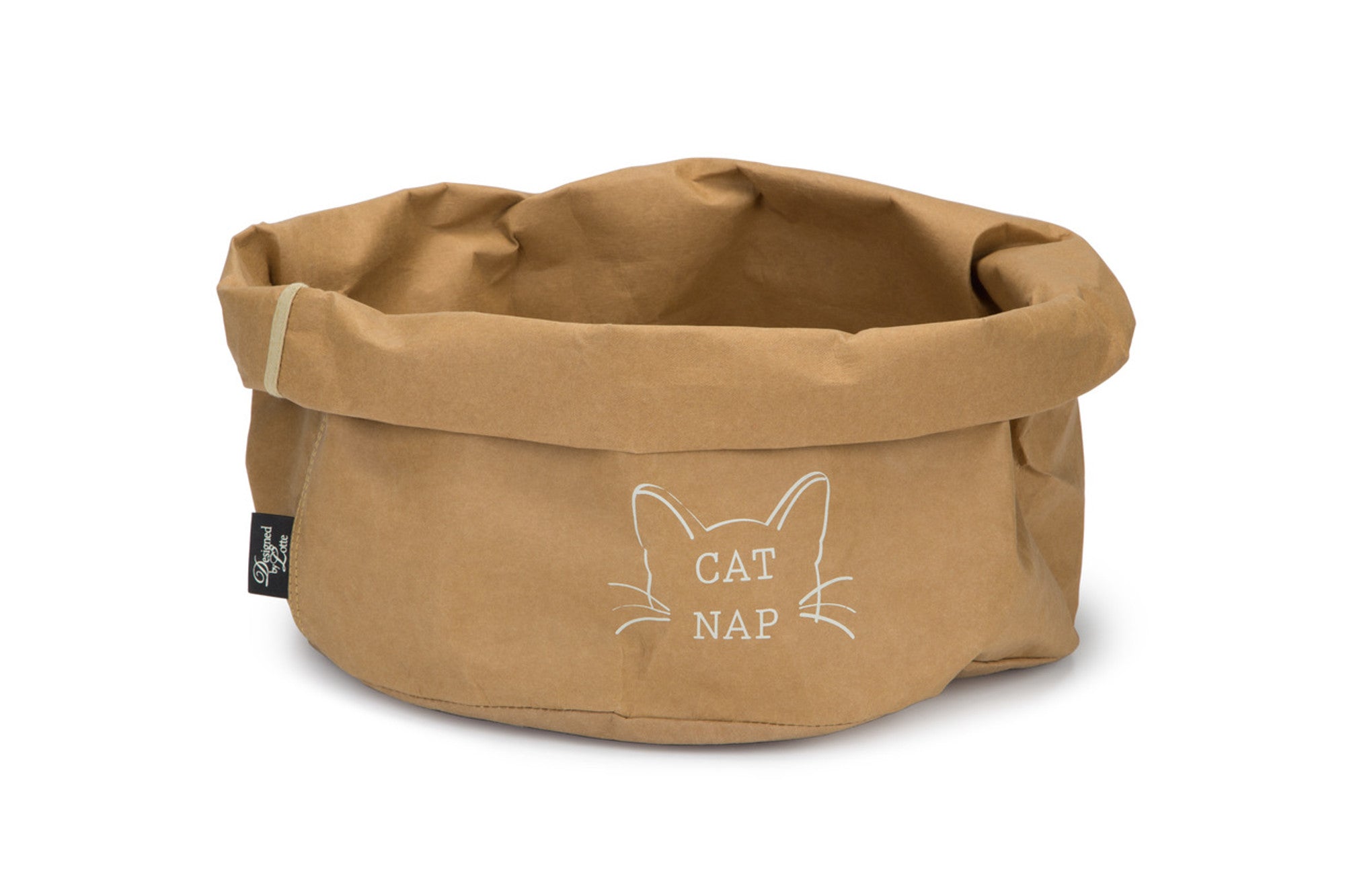 Das Miss Miauw Katzenbett ist für Ihre Katze ein angenehmer und geschützter Schlafplatz. Sie können das Katzenbett nach Ihren eigenen Wünschen gestalten: Die Kante umbiegen oder nach oben klappen für einen besonderen Effekt. Das Katzenbett ist hergestellt aus präpariertem Papier. Erhältlich in zwei Varianten, Miss Miauw in der Farbe Braun und Cat Nap in Grau. Ø 40 cm.