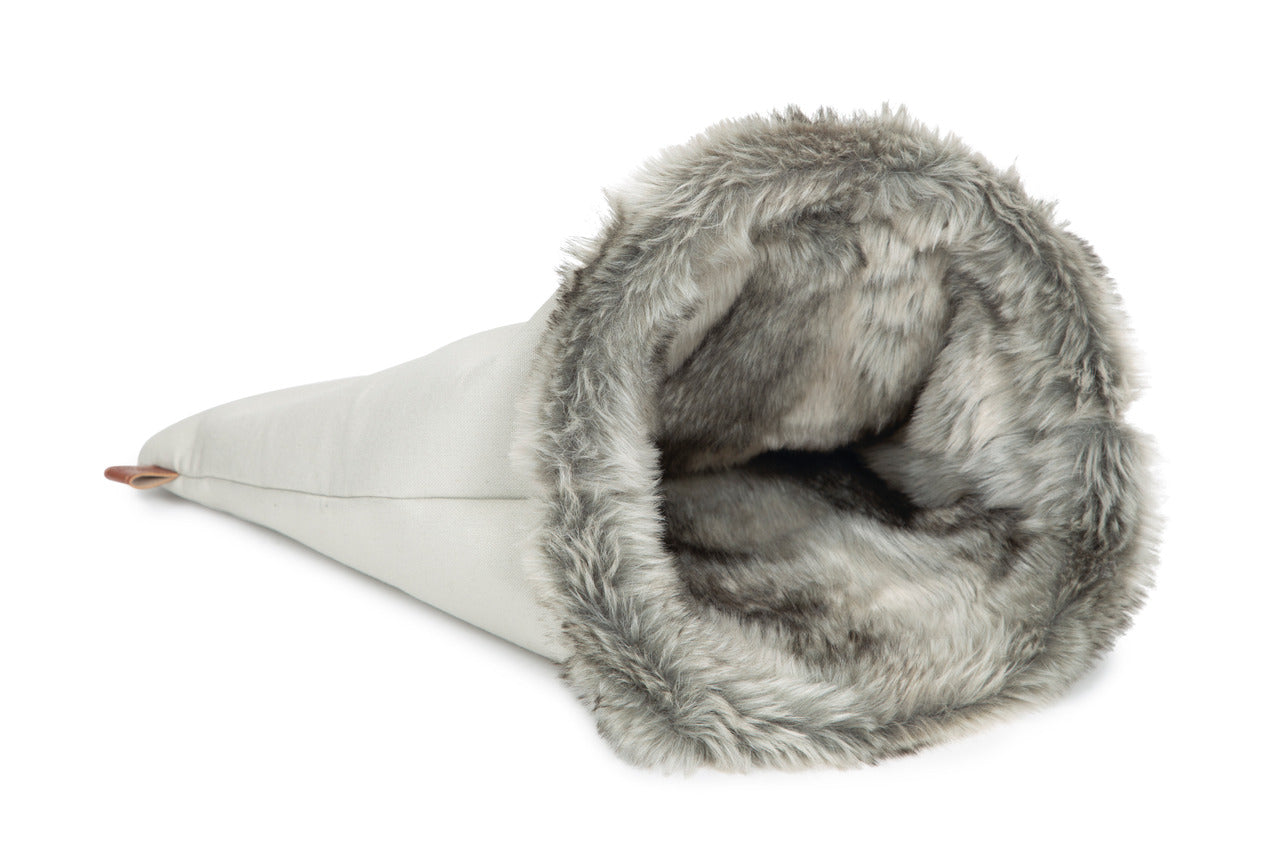 Der Designed by Lotte Spiel- und Schlafsack Faisca ist eine richtige Augenweide und deine Katze wird es lieben, sich dort zu verstecken, zu schlafen oder zu spielen. Der Spiel- und Schlafsack ist im Inneren aus langhaarigem Plüsch gearbeitet, was ihn zu einem weichen, warmen und kuscheligen Plätzchen für deine Katze macht. Erhältlich in zwei Farben.