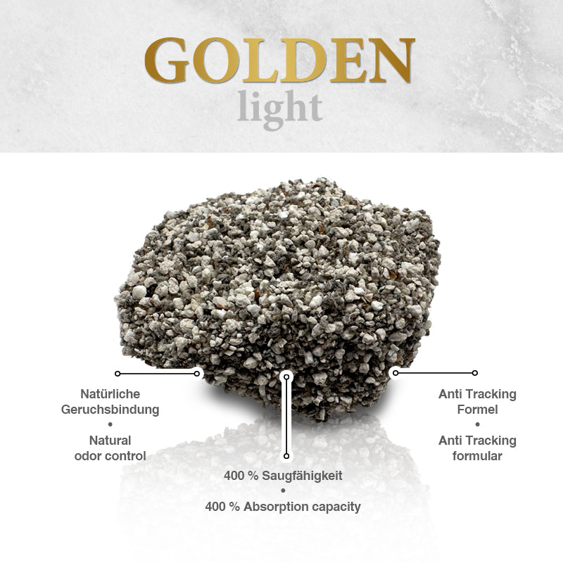 Die Golden Light Katzenstreu kombiniert die Vorteile einer mineralischen und einer pflanzlichen Komponente – für eine besonders effiziente, saubere und komfortable Katzenhygiene.