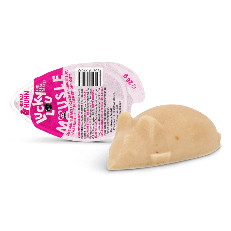 Wir Katzen lieben Abwechslung! Schließlich fangen wir uns auch nicht jeden Tag die gleiche Beute. Nein, wir sind da vielseitig. Als beste Jäger der Welt können wir unsere Beute aus der Luft schnappen oder sie im Grünen lautlos aufspüren. Sich ab und zu bedienen zu lassen, ist aber auch ganz mice, das muss ich zugeben. Einen göttlichen (Sch)maus einfach mal relaxt serviert bekommen – Luxus pur, sag ich dir! Auf meiner Mission für die weltbeste Katzennahrung hab ich mir deshalb eine weitere gönnige Schlemmerei einfallen lassen: einen Snack in Mausform. Mega, oder? Feinstes Paté mit dem wahrhaft besten Lucky-Lou-Geschmack. Durch die verlockende Form meiner Mäusle können Katzen gar nicht anders als ran an die Maus, um diese zu erforschen und anzuknabbern. Hör auf einen Feinschmecker: Mäusle sind einfach lecker!