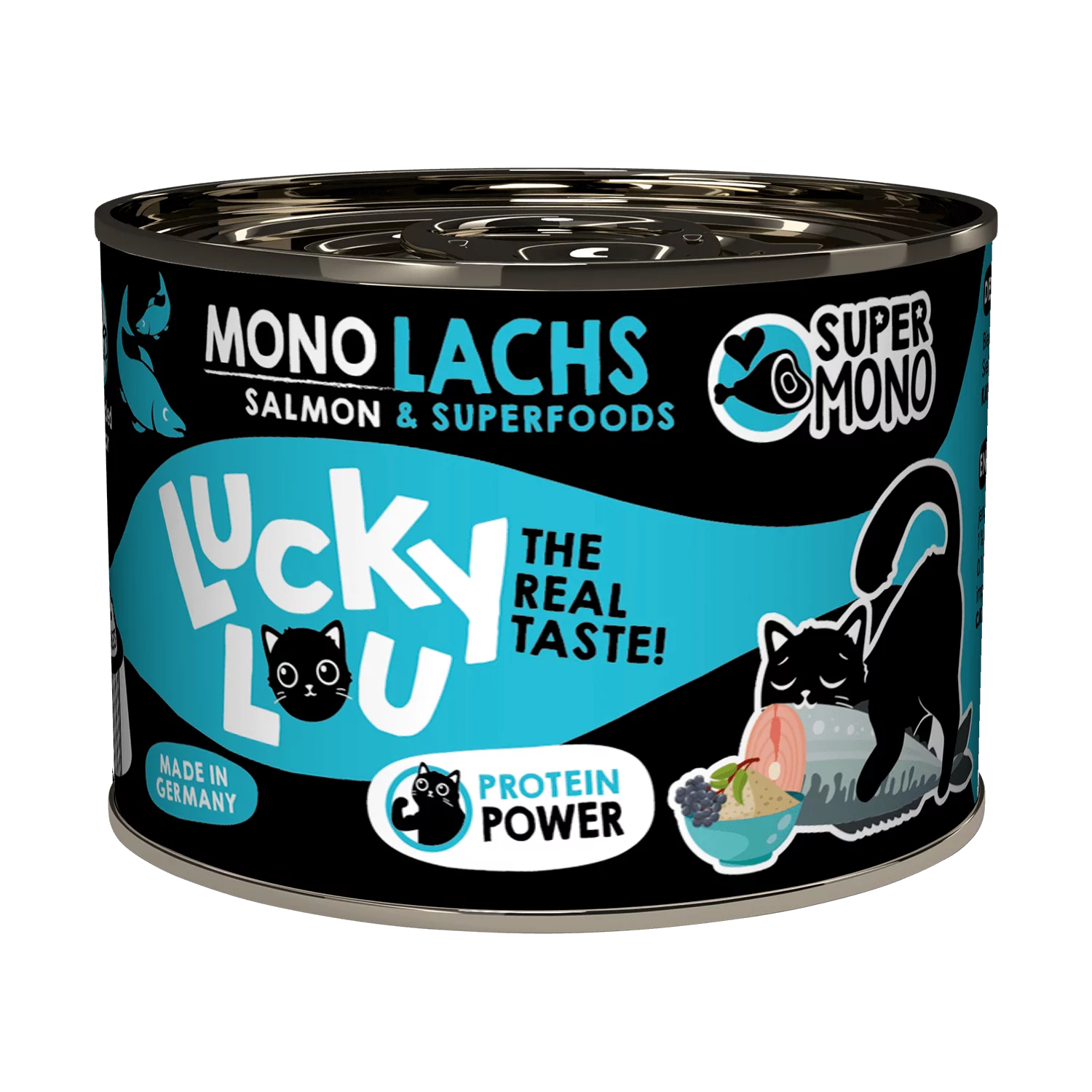 Lucky Lou® SuperMono ist eine gute Wahl für alle, die beim Katzenfutter auf Qualität, Verträglichkeit und Geschmack setzen. Egal ob du dich für die praktische Dose oder den handlichen Beutel entscheidest – dieses hochwertige Nassfutter liefert, was viele sensible Katzen brauchen: eine klare Zusammensetzung mit nur einer tierischen Proteinquelle (Monoprotein) und ganz ohne Getreide.