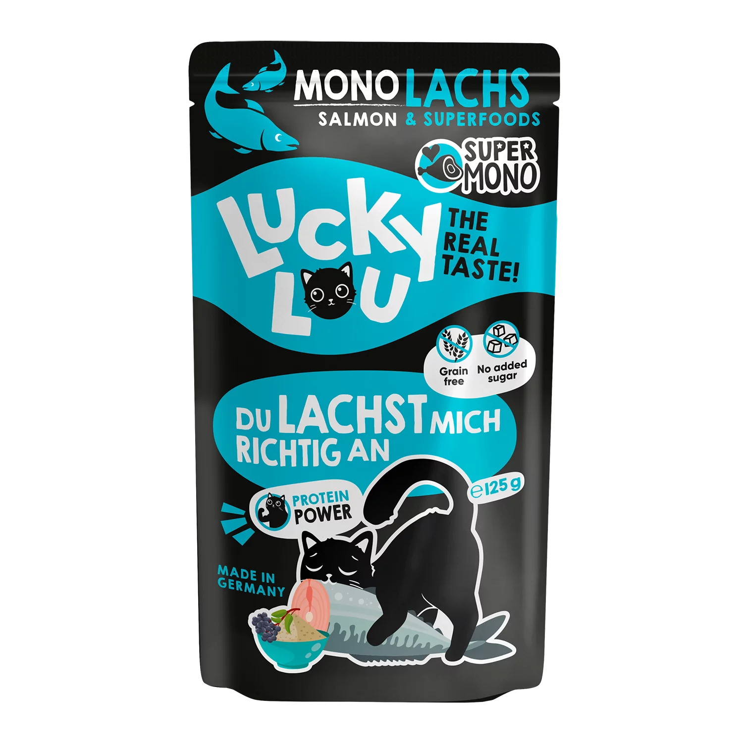 Lucky Lou® SuperMono verbindet bewusstes Füttern mit echtem Genuss – für zufriedene Katzen und ein gutes Gefühl bei jedem Öffnen der Dose oder jedes Mal, wenn du den Beutel in den Napf gibst.