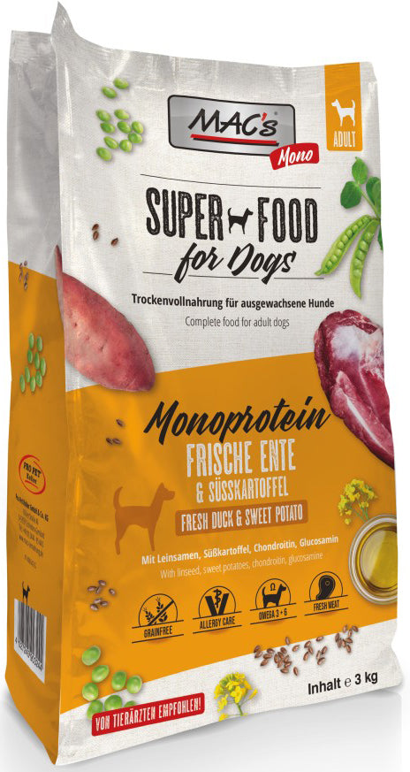 MACs Mono wurde speziell für allergieanfällige Hunde entwickelt. Die Grundlage ist eine Fleisch-/Fischsorte als Proteinlieferant und Kartoffel als Kohlehydrat-Lieferant.