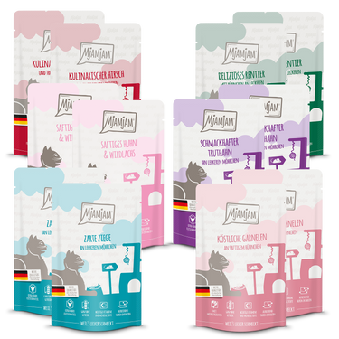 Ein besonderer Genuss für jede anspruchsvolle Katze. Das Mixpaket V enthält eine exklusive Auswahl an hochwertigen Nassfutter-Sorten mit Wildlachs, Garnele, Hirsch, Rentier, Ziege und Truthahn. Dieses Katzen-Nassfutter bietet deinem Liebling abwechslungsreiche und natürliche Geschmackserlebnisse und sorgt für pure Verwöhnmomente. Perfekt als getreidefreies Alleinfutter oder als Ergänzung zu Trockenfutter, liefert es wichtige Proteine und Nährstoffe für ein gesundes Katzenleben. Ideal für Katzen, die artgerechte und hochwertige Feuchtfutter-Mahlzeiten lieben.