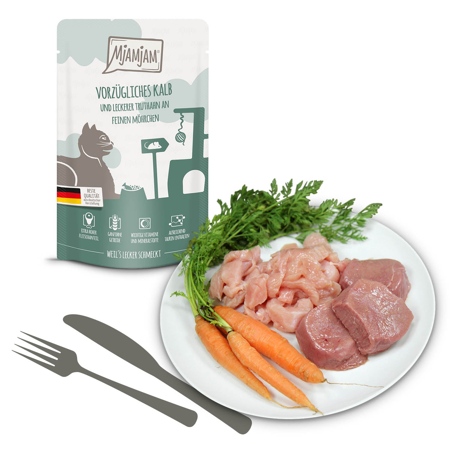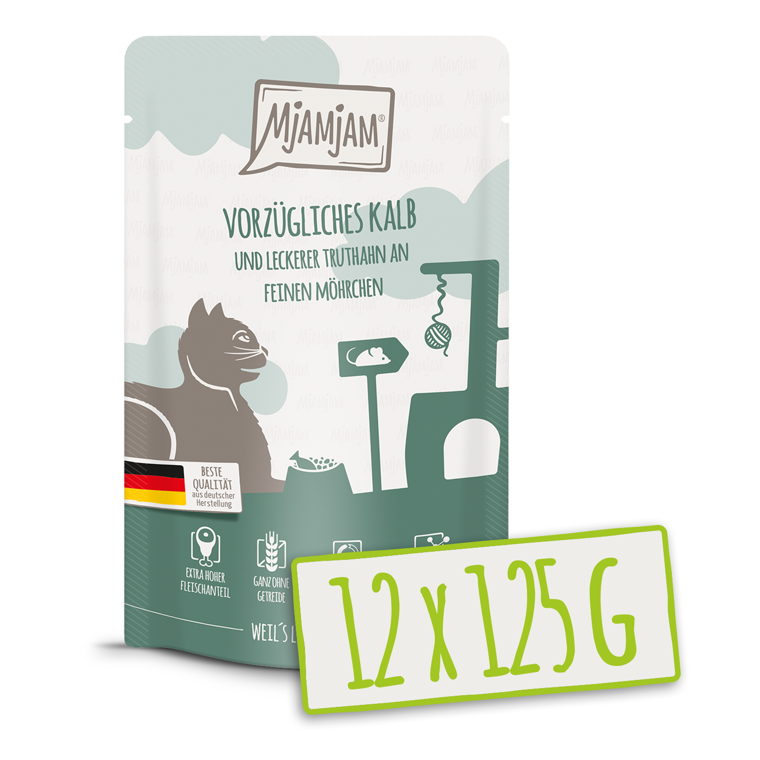 MjAMjAM - Quetschie - vorzügliches Kalb & Truthahn an leckeren Möhrchen 12x125g