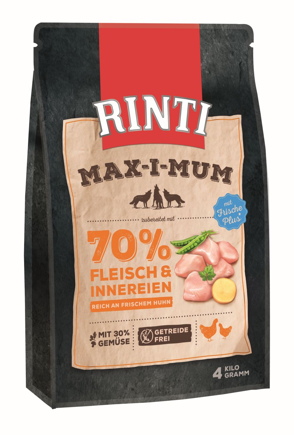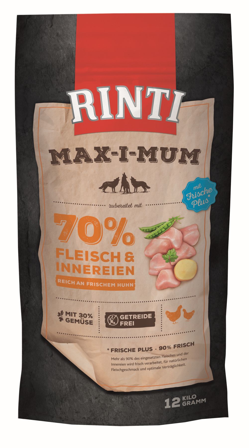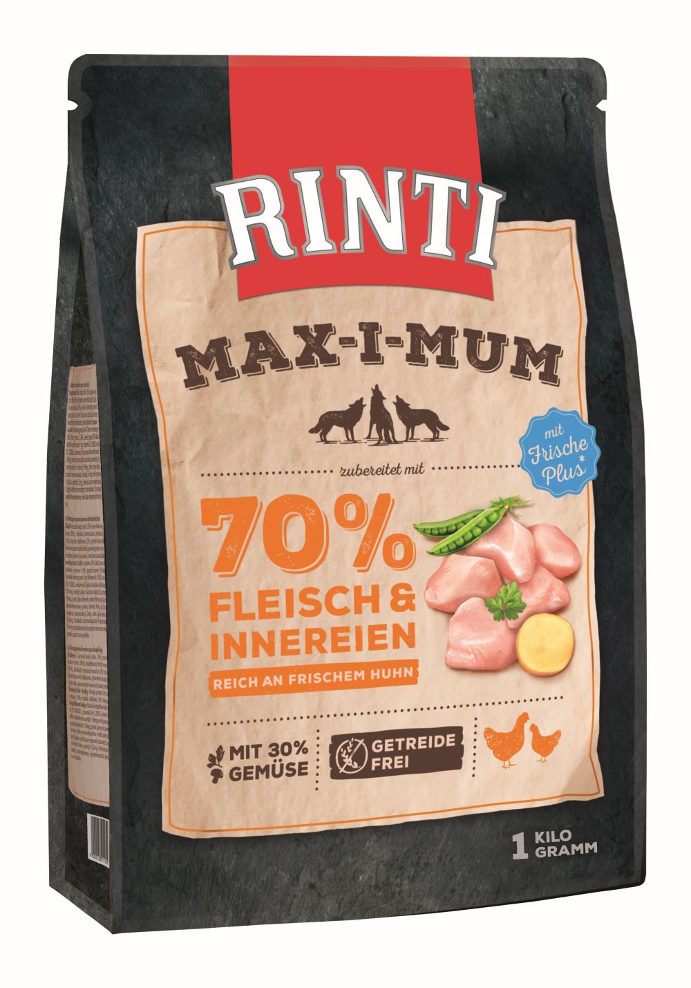 Mit Frische Plus: 90% frisch. Rinti Max-i-Mum wird mit 65% frischem Fleisch und frischen Innereien zubereitet. Dies entspricht über 90% der eingesetzten Fleischmaterialien. Dadurch wird der natürliche Fleischgeschmack gefördert und die Nahrungsverwertung unterstützt. Mit einem erhöhten Rohfett ist ein ausgewogenes Rohprotein-/Fett-Verhältnis für eine schonende Verdauung gewährleistet.