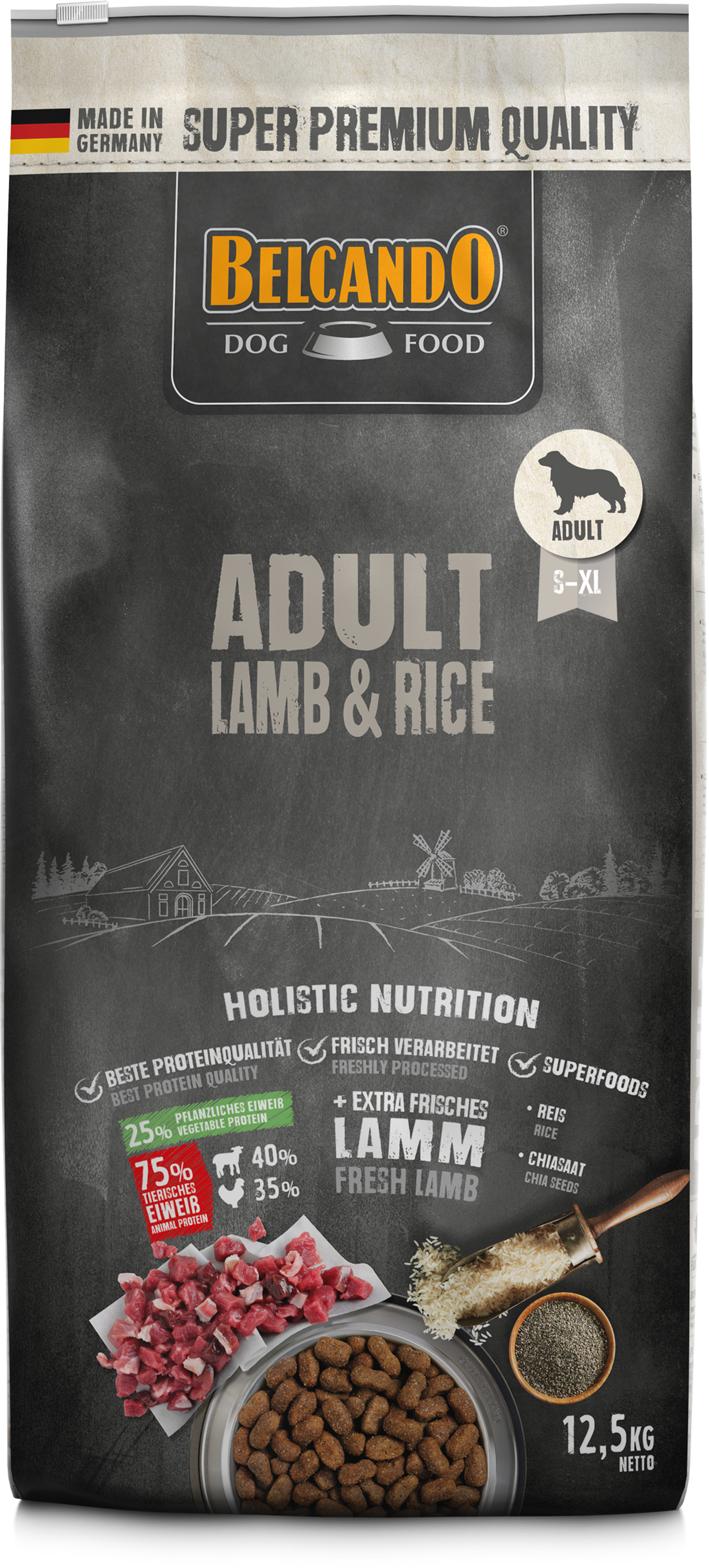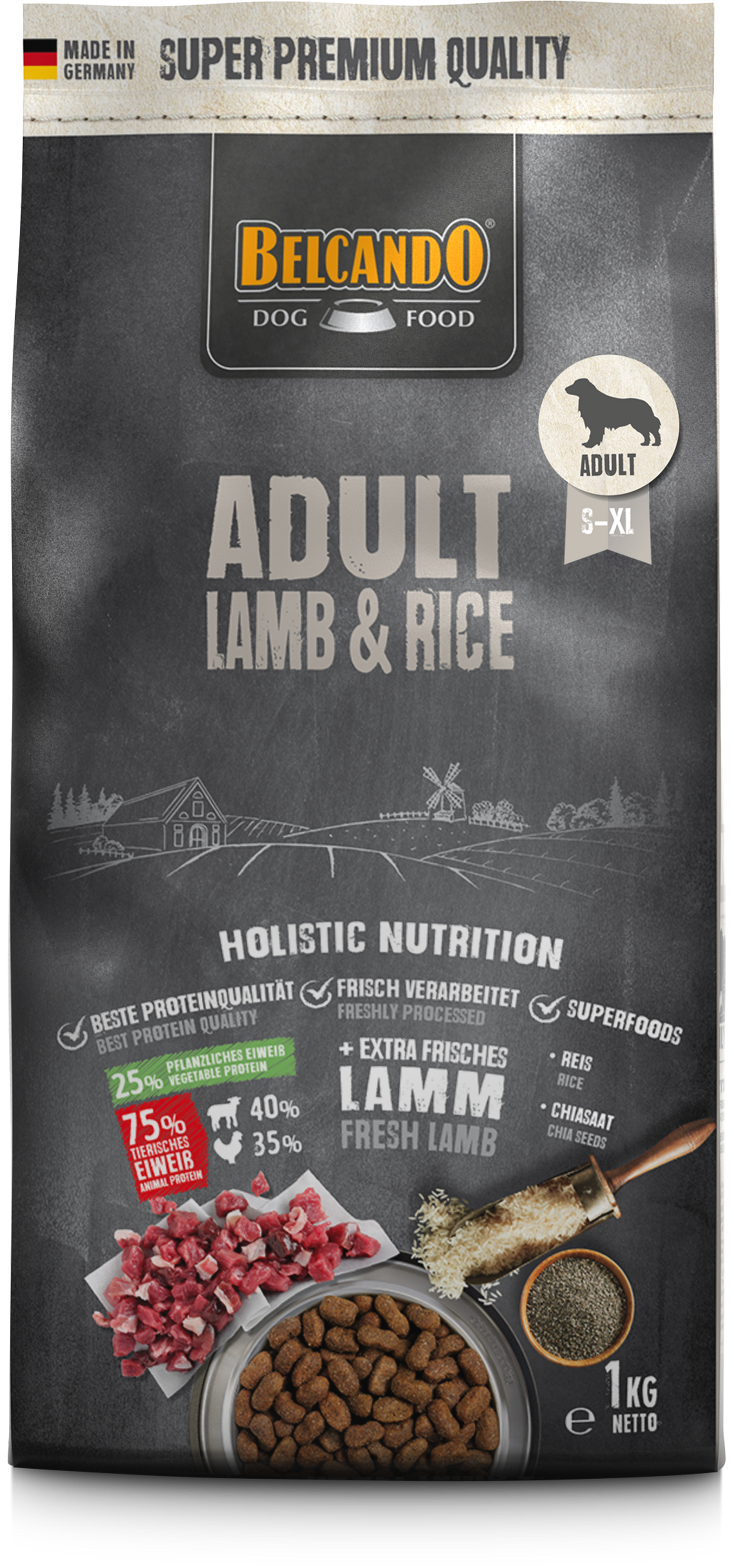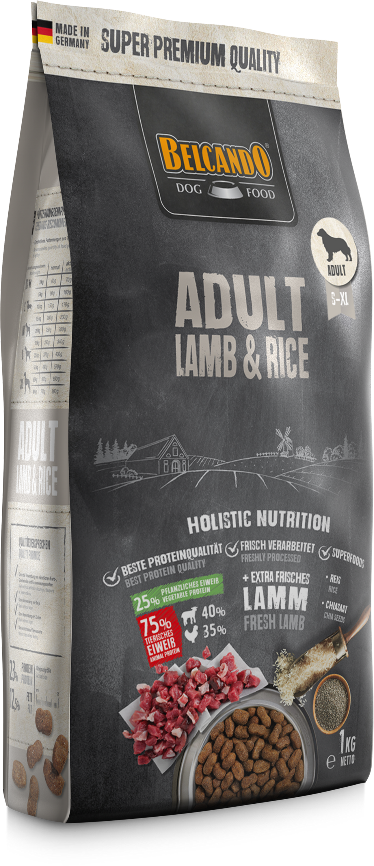 Leicht verdaulich und besonders bekömmlich dank ausgewählter Rohstoffkombinationen. BELCANDO® Adult Lamb & Rice bietet empfindlichen Hunden eine ganzheitliche sensitive Ernährung. Reich an sehr gut verträglichem Lamm und leicht verdaulichem Reis. Chiasaat unterstützt die Verdauung mit natürlichen Schleimstoffen und liefert essentielle Fettsäuren. Das Angebot an Protein und Fett ist auf den Energiebedarf von Hunden mit normaler Aktivität abgestimmt. Anteil tierisches Eiweiß am Gesamteiweiß: 75 % (aus Lamm 40 %, aus Geflügel 35 %)