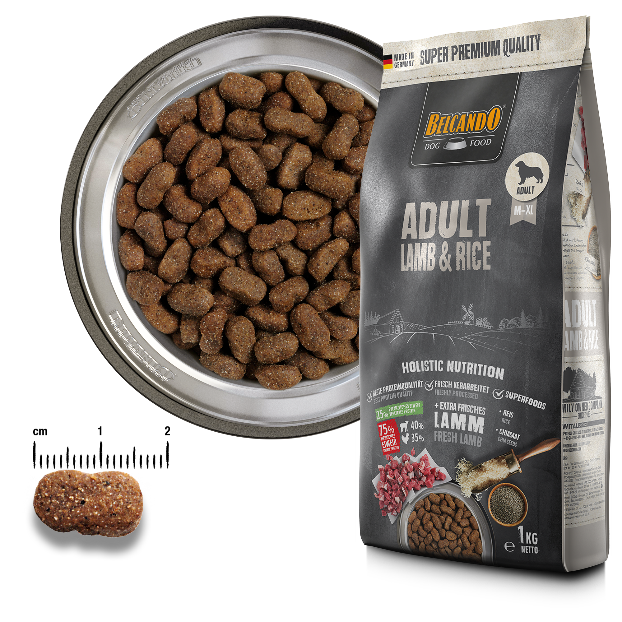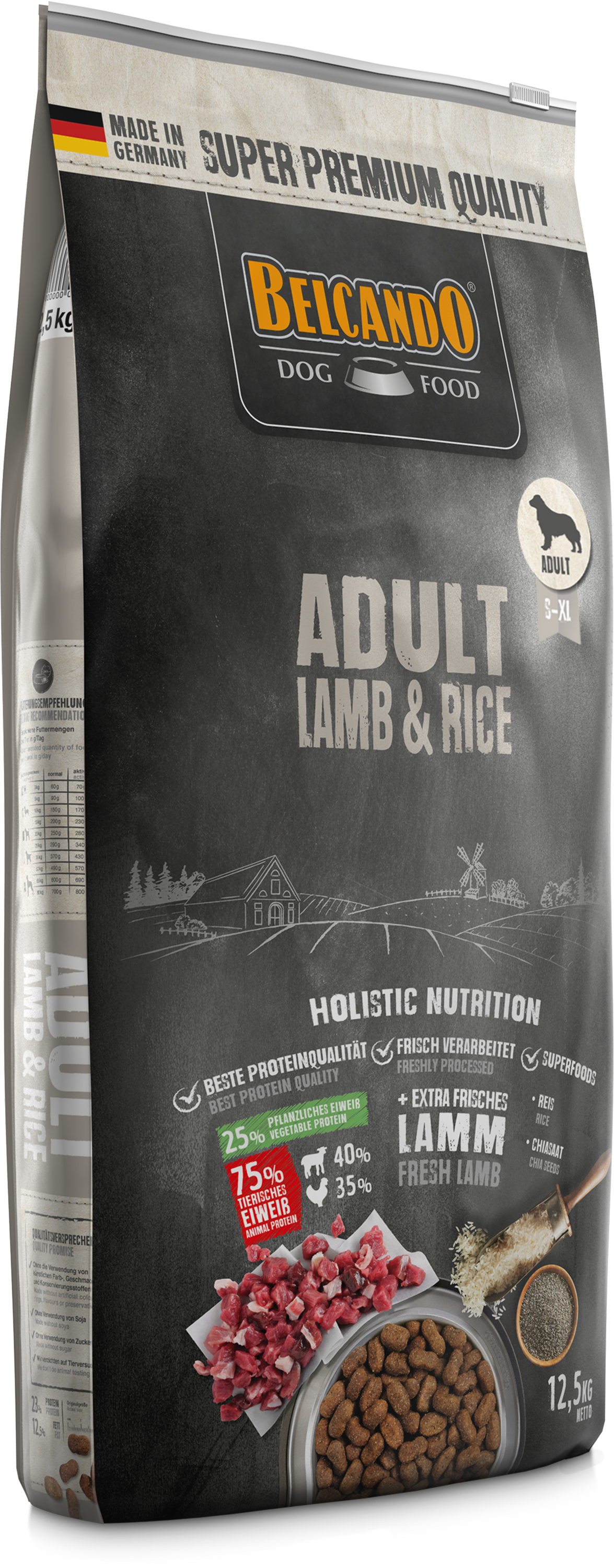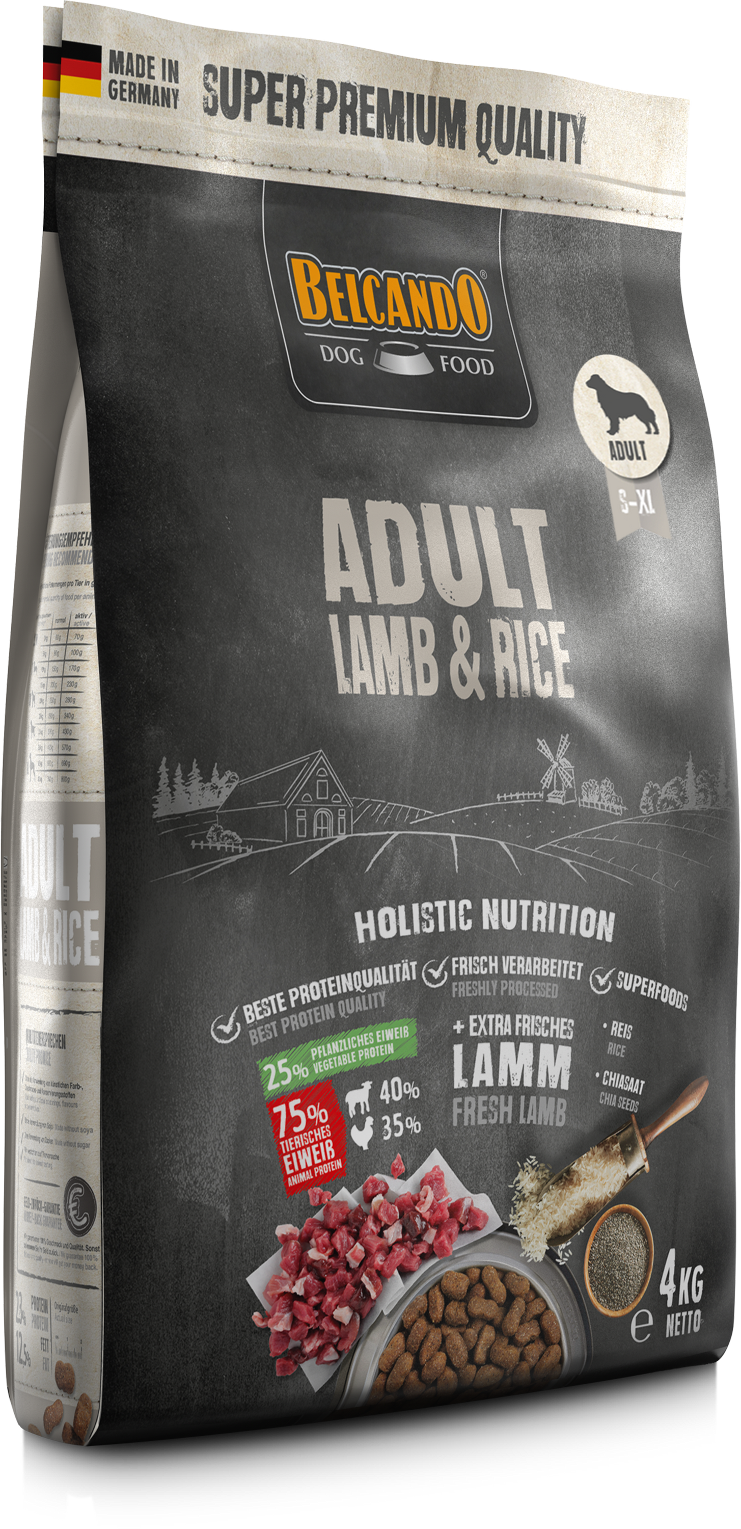 Leicht verdaulich und besonders bekömmlich dank ausgewählter Rohstoffkombinationen. BELCANDO® Adult Lamb & Rice bietet empfindlichen Hunden eine ganzheitliche sensitive Ernährung. Reich an sehr gut verträglichem Lamm und leicht verdaulichem Reis. Chiasaat unterstützt die Verdauung mit natürlichen Schleimstoffen und liefert essentielle Fettsäuren. Das Angebot an Protein und Fett ist auf den Energiebedarf von Hunden mit normaler Aktivität abgestimmt. Anteil tierisches Eiweiß am Gesamteiweiß: 75 % (aus Lamm 40 %, aus Geflügel 35 %)