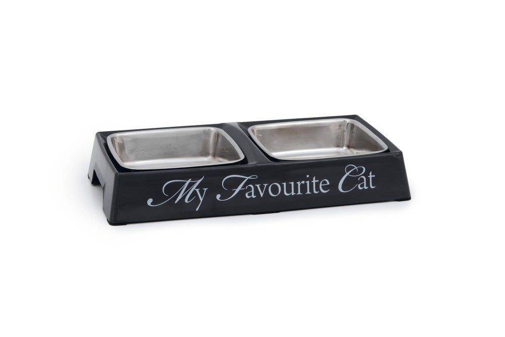 Der Designed by Lotte Doppelnapf Katze „My Favourite Cat“ vereint Futter- und Wassernapf in einem stilvollen Set und eignet sich perfekt für Haushalte mit mehreren Katzen.