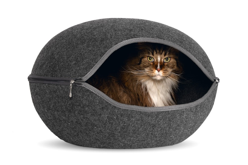 Die Katzenhöhle Innu bietet Katzen einen eigenen, abgedunkelten Raum, in dem sie friedlich schlafen können. Dank des Reißverschlusses kann der obere Teil abgenommen werden und die Höhle verwandelt sich in ein Körbchen.