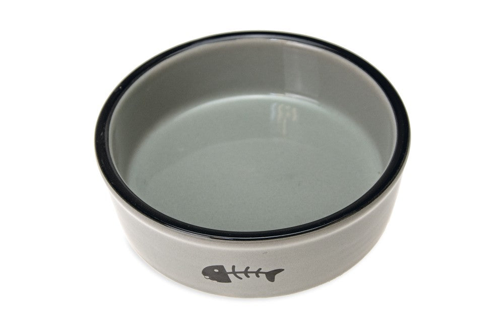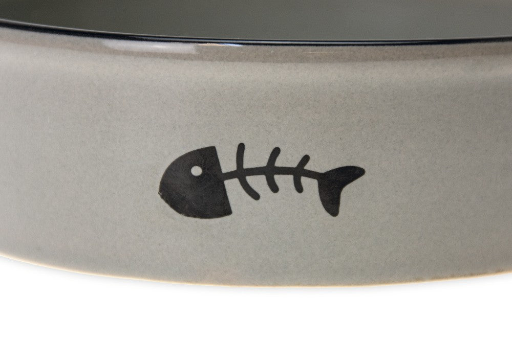 Der Futternapf für deine Katze in grau ist eine moderne Interpretation des altbekannten Keramiknapfes. Ein schwarzer Akzent am Rand sowie ein Schriftzug bzw. Motiv an der Front sind schöne Details, die die Optik abrunden. Der pflegeleichte Napf kann bequem in der Spülmaschine gereinigt werden.