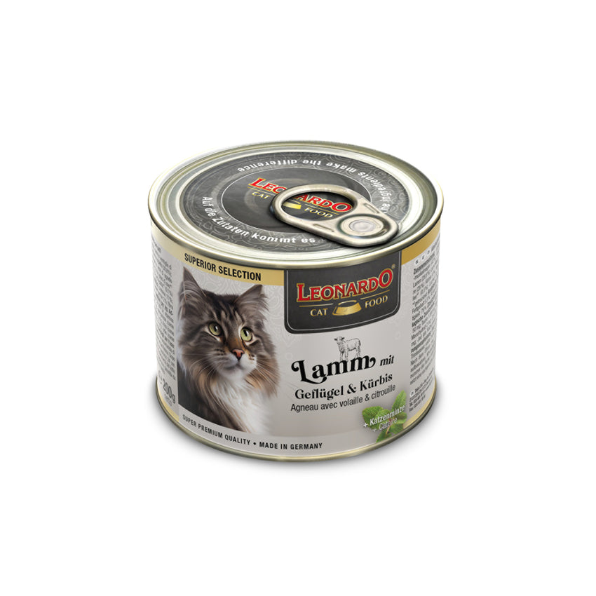 Schmeckt nicht nur im Herbst: Die Kombination aus zartem Lammfleisch und mildem, fettarmem Geflügel ist ein besonderer Leckerbissen für alle Katzen, der auch für empfindliche Katzenmägen geeignet ist. Dieses Katzennassfutter bietet eine schonende Zubereitung mit Kürbis, der neben leichter Süße auch wertvolle Nährstoffe liefert, die das Wohlbefinden der Katze positiv beeinflussen. Das zugesetzte Lachsöl verleiht dem Fell mit mehrfach ungesättigten Fettsäuren einen schönen, seidigen Glanz. Dieses Nassfutter stellt eine hochwertige und ausgewogene Katzennahrung dar und ist als Katzenfutter für anspruchsvolle Feinschmecker perfekt geeignet.