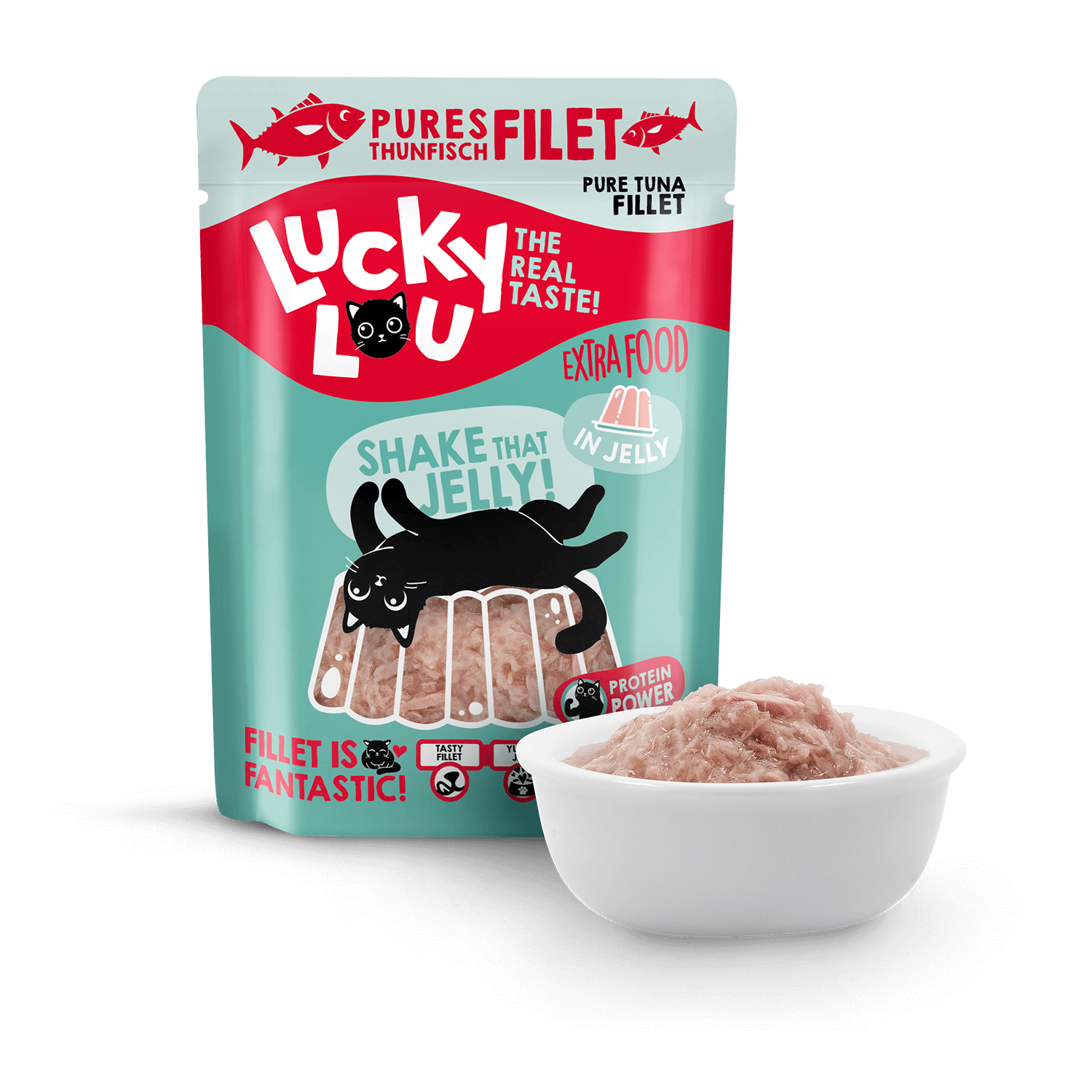 Lucky Lou® Extra Food Thunfischfilet in Gelee bringt echte Abwechslung in den Futternapf deiner Katze. Diese praktische 70g-Pouch ist ein nährstoffreiches Ergänzungsfutter, das nicht nur besonders gut schmeckt, sondern deiner Katze auch guttut. Perfekt für zwischendurch, wenn du deiner Samtpfote einen kleinen kulinarischen Luxus gönnen möchtest – quasi ein Cheatday für Katzen. Anstatt immer nur Einheitsfutter zu servieren, kannst du so für Vielfalt sorgen.