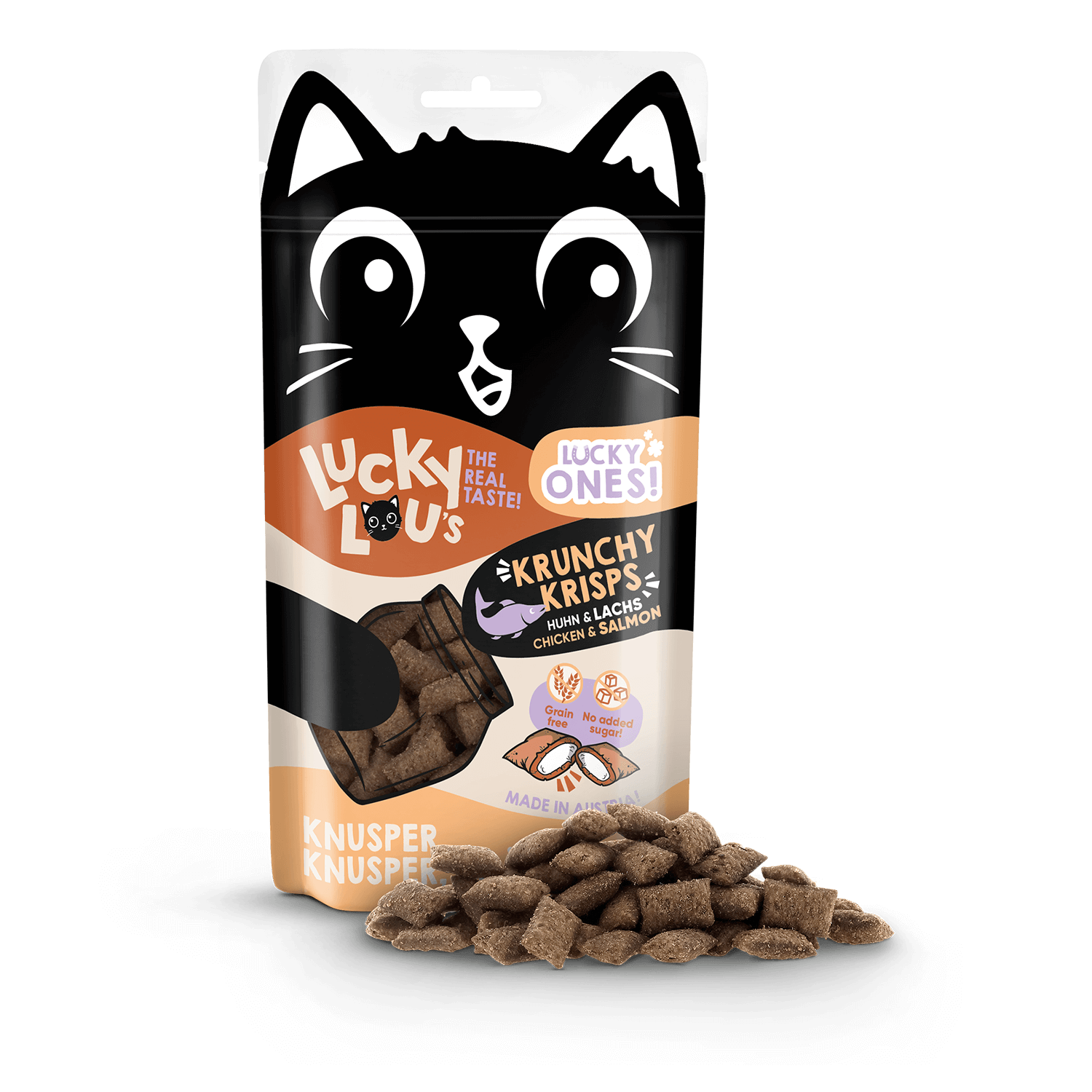 Lucky Ones Krunchy Krisps sind dabei mein neuster Coup: mega-krunchy mit absolut weltbester Füllung! Wer kann da denn widerstehen? Also ich nicht. Die mega-geilen Knusperkissen lassen alle Katzen aufhorchen und in kürzester Zeit um deine Beine streichen. Knusperlecker sag‘ ich dir.
