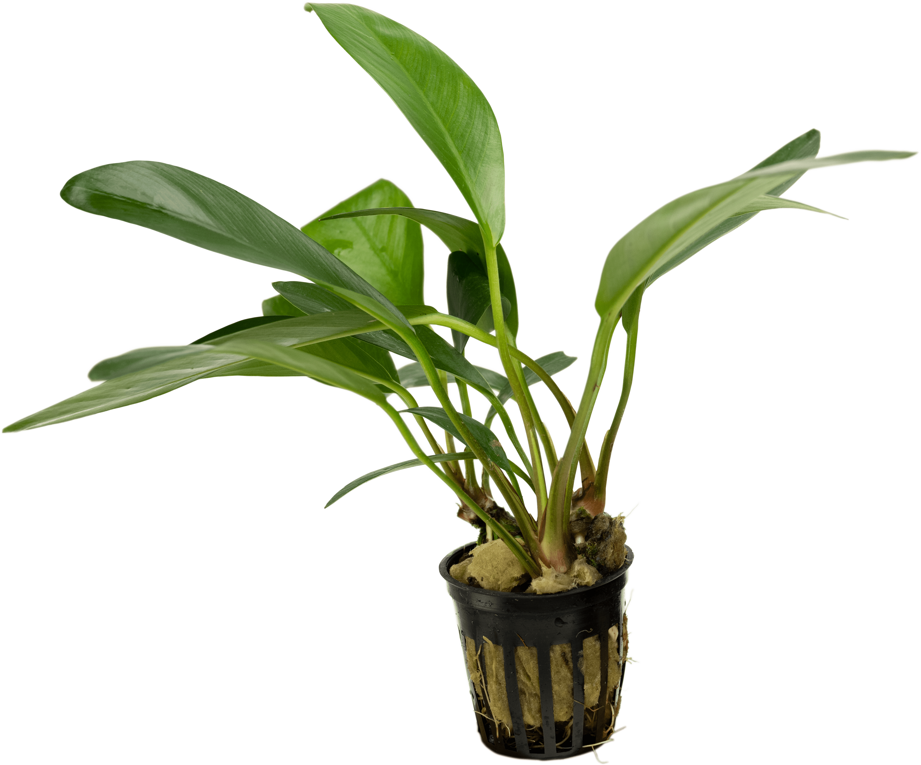 Anubias heterophylla 'Congensis' ist eine Aquarienpflanze mit größerer Blattvariante, die in sowohl aquarischen als auch terrestrischen Umgebungen wächst. Diese Pflanze kann sowohl unter Wasser als auch über Wasser in emersen Bedingungen gedeihen. Ihre robusten, dunkelgrünen Blätter verleihen jedem Aquarium oder Terrarium eine natürliche Ästhetik und bieten Lebensraum für Aquarienbewohner.