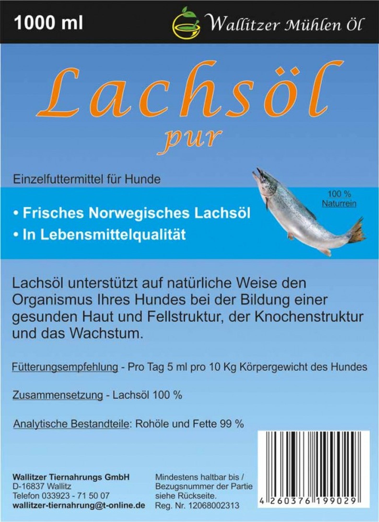 WALLITZER MÜHLENÖL - Lachsöl pur für den Hund - 100% Naturrein
